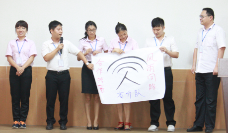 圖14: “噔噔噔” ,終于等到我們 “高升隊”登場啦!我們的口號是“風雨同路,合作共贏”,望紅海業(yè)績蒸蒸日上,各位同仁步步高升!